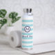 Stay hydrated in coastal style with this nautical-themed water bottle featuring crisp light blue and white horizontal stripes. A classic navy blue monogram initial sits at the centre of a double-ring porthole-style frame, paired with the elegant script phrase "Beach Vibes" for a breezy, beach-ready look. Perfect for seaside adventures, boat trips, summer holidays, or as a gift for ocean lovers. Personalize with your initial for a stylish finishing touch.