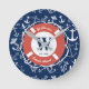 Nautical Monogram Navy Blue Anchor Beach House Round Clock
