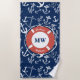 Nautical Monogram Navy Blue Anchor Pattern Beach Towel