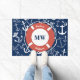 Nautical Monogram Navy Blue Anchor Pattern Doormat