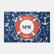Welcome aboard! A nautical themed pattern of different types of ship anchors with navy blue background and customized monogram framed by a lifebuoy. Summer sailing boat design ideal for lovers of the beach, sea and ocean. Sail away sailor with your boating themed design. Ideal boat gift, beach house decor, boat captain gift, birthday gift, nursery decor, kids room art, home decor, Christmas present or gift for any other special occasion.