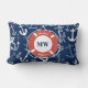 Nautical Monogram Navy Blue Anchor Pattern Lumbar Pillow