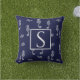 Nautical monogram Seahorse shell Navy Blue White Outdoor Pillow