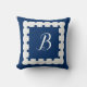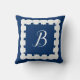 Your monogram on a navy blue nautical throw pillow with scallop shell seashell border. Click personalize to change to your initial or initials. Coastal decor for the vacation condo or your sailboat.