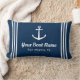Nautical Navy Anchor Stripe Boat Name Lumbar Pillow