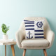 Nautical navy anchor/wheel/navy blue stripe throw pillow