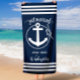 Nautical Navy Blue Anchor and Rope Just Married Beach Towel