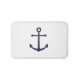 Modern Minimalist Nautical Bath Mat featuring navy blue anchor on white background.