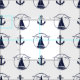 Nautical Navy blue anchor/blue sailboat silhouette Fabric
