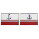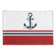 Nautical navy blue anchors with red and navy blue stripes on a red and white background. Matching items available in our store.