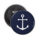 Modern Minimalist Nautical Button Bottle Opener featuring white anchor on navy blue background.