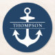 Nautical Navy Blue Anchor Custom Monogram Name Round Paper Coaster