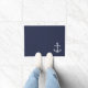 Modern Minimalist Nautical Door Mat featuring white anchor on navy blue background.