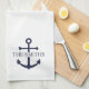 Nautical Navy Blue Anchor Personalized Family Name Kitchen Towel