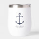 Modern Minimalist Nautical Navy Blue Anchor Personalized Groomsmen Thermal Wine Tumbler