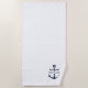 Nautical Navy Blue Anchor Personalized Name Beach Towel