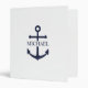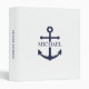 This personalized binder features a navy blue anchor design with custom name in a classic navy serif font.