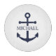 This personalized gift features a navy blue anchor design with custom name in a classic navy serif font.