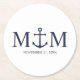 Nautical Navy Blue Anchor Wedding Round Paper Coaster