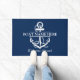 Nautical Navy Blue Anchor Welcome Aboard Doormat