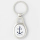 Modern Minimalist Nautical Keychain featuring navy blue anchor with personalized name in navy blue modern sans serif font style on white background.