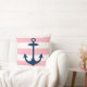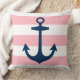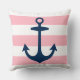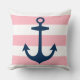 Nautical Navy Blue Anchor with Pink Stripes Throw Pillow