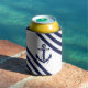 Nautical navy blue anchor with rope/blue stripe can cooler