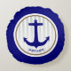 Nautical Navy Blue Anchor with Stripes Round Pillow