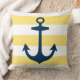 Nautical Navy Blue Anchor with Yellow Stripes Throw Pillow