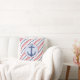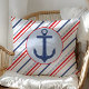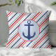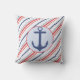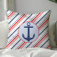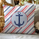 Nautical Navy Blue and Red Stripes Anchor Throw Pillow