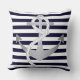 Nautical Navy Blue and Silver Anchor Sailing Throw Pillow