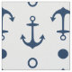 Custom fabric features a nautical boat anchor and geometric circle pattern in navy blue. White background colour can can be customized.