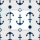 Nautical Navy Blue and White Anchors Pattern Fabric