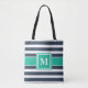 Nautical Navy Blue and White Striped Monogram Tote Bag