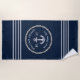 Nautical Navy Blue Boat Name Anchor Rope Beach Towel