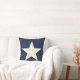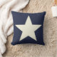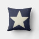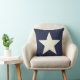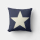 Nautical navy blue throw pillow with a large tan off-white star design.