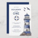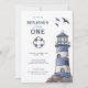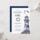 Nautical Navy Blue Lighthouse Costal 1st Birthday Invitation