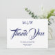 Nautical anchor navy blue and white elegant Script couple monogram initials Custom Wedding Thank You note card.