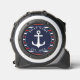 Create a personalized nautical tape measure as a gift for a boat owner. Template makes it easy to type a boat name and year or another text. Navy blue, red and white design feature anchor and hand-drawn stripes.
