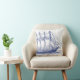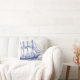 Classy elegant nautical throw pillow with a navy blue schooner illustration and a white background.