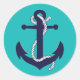 Nautical navy blue silhouette anchor rope/design 2 classic round sticker