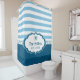 Decor your bathroom in style with this - Nautical Navy Blue Stripes Helm Logo Personalized Shower Curtain. You can add your monogram, name or text on this design. It's easy and fun.
