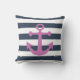 Nautical Navy Blue Stripes Purple Anchor Throw Pillow