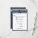 Nautique avale bleu marine RSVP invitations 2 choix de menu - la conception avant dispose d'un ruban d'ancrage avec un contour qui court le long des bords de la carte. Les motifs et le texte sont bleu marine sur un arrière - plan blanc. La conception du dos continue le ruban autour de la carte et les couleurs du contour et de l'arrière - plan ont maintenant été changées, où le contour est blanc et l'arrière - plan bleu marine. Au milieu se trouve deux hirondelles en vol, travaillant ensemble pour porter une ancre sur une corde. Le papier par défaut est défini sur stock d'invitation de base, mais peut être modifié en cliquant sur 'choisir votre style' puis en utilisant la zone de liste déroulante Papier choisissez une des options. Chaque invitation est accompagnée d'une enveloppe blanche. Pour modifier la police, la taille de la police ou la couleur de la police, cliquez sur le bouton personnaliser sous l'invitation RSVP Nautique. Notez que vous devrez peut-être le customiser si certains termes sont trop longs et qu'ils correspondent mieux à la conception. Si vous êtes satisfait du paramétrage de la police, vous pouvez utiliser la fonction de personnalisation pour modifier les informations de démonstration à vos données personnelles. Cliquer sur les petites images de l'avant/de l'arrière de la carte avec changement sur ce côté pour qu'il puisse être modifié. Une fois terminé, vérifiez que les informations que vous avez appliquées sont correctes et que vous n'avez pas d'erreurs d'orthographe des deux côtés de la carte. D'autres produits qui vont avec celui-ci.