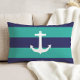 Nautical Navy Blue Turquoise Stripes White Anchor Accent Pillow