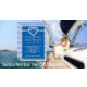 Modern nautical wedding invitation design featuring a whimsically romantic white heart knot displayed inside a navy blue border with rope accents and stripes. White script typography that says: Tying The Knot. Classic navy blue and white colour scheme.