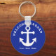 Nautical Navy Blue Welcome Aboard Boat Name Anchor Keychain