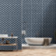 A nautical wallpaper featuring a white boat wheel pattern on a navy blue background. Perfect for an accent wall or for a room makeover to elevate the aesthetic of your space.