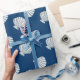 Nautical Navy Blue White Seaside Shells Birthday Wrapping Paper