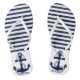Nautical Navy Blue White Stripes and Blue Anchor Flip Flops